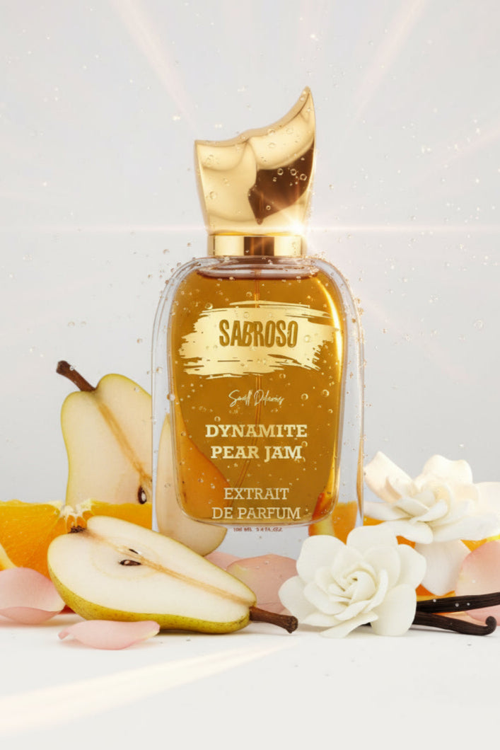 DYNAMITE PEAR JAM is a sophisticated women's fragrance opening with the luscious, sweet aroma of pear jam. This fragrance gracefully unfolds into warm vanilla and rich caramel notes, creating a luxurious and inviting heart. It finishes with a delicate touch of orange blossom, adding a fresh, floral elegance to the scent’s depth. Perfect for those seeking a blend that is both rich and refined.