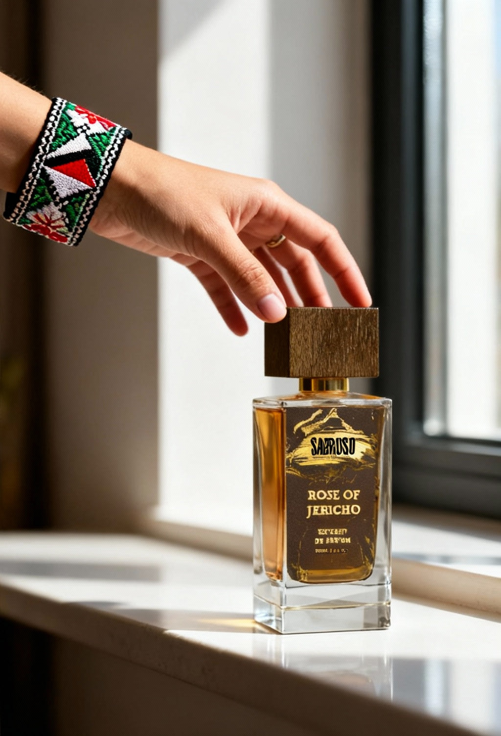 ROSE OF JERICHO is a refined unisex perfume that expertly blends green notes inspired by authentic Palestinian essences like Clary Sage, limon, orange blossom, and native greenery. This luxury fragrance offers a fresh, sophisticated aroma that harmonizes vibrant energy with elegant subtlety, making it a distinguished choice for those seeking a distinctive and balanced scent.